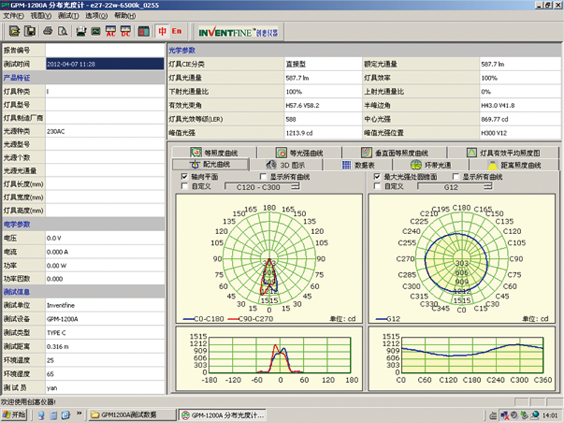 >自動(dòng)測(cè)定光束角:常用的半強(qiáng)度角以及可以滿足特殊要求的1/4光強(qiáng)度角和3/4光強(qiáng)度角和1/10光強(qiáng)度角